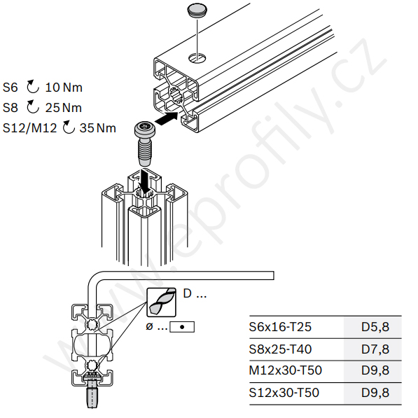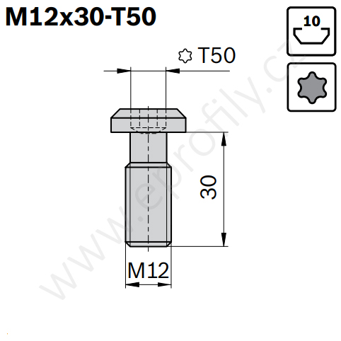 Centrální šroub metrický závit, ESD, 3842530235, M12x30-T50, Balení (100ks)