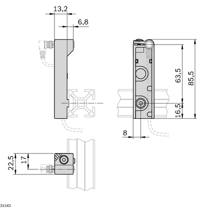 Držák umožňuje upevnění senzoru typu M8×1 Ø 6,5 mm x 30 mm.