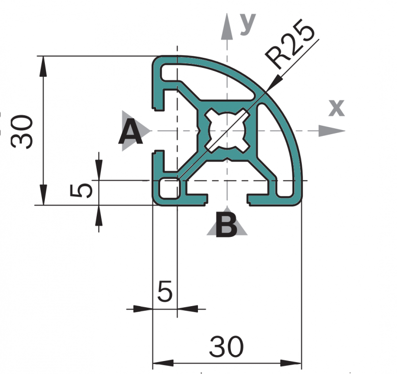 Hliníkový, konstrukční profil, 3842992896, 30x30 R, Řezaný profil