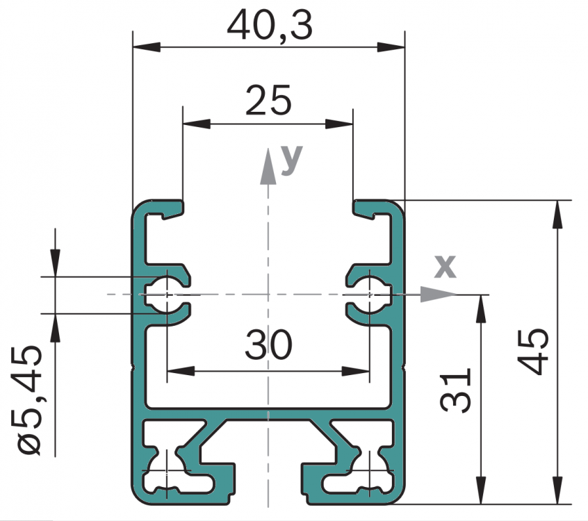 Materiál: eloxovaný hliník, 40x45, N10, L = 6000 mm