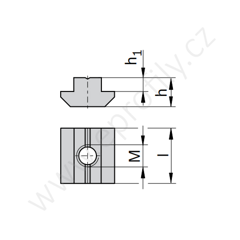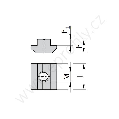 Rozměry: N10, M6, h = 10,5 mm, h1 = 5,0 mm, l = 20 mm