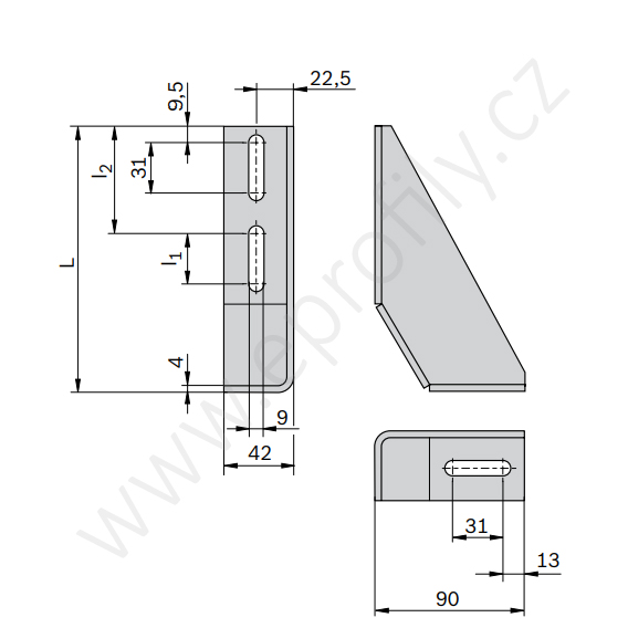 Materiál: ocelový plech, pozinkované, 90°, vnější, 210
