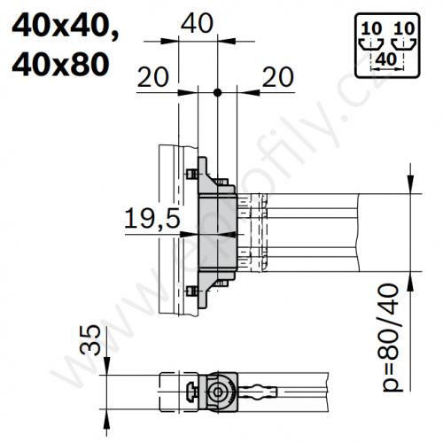 Otočný kloub, ESD, 3842532208 /nahrazeno novým č. 3842554404/ 40x40, (1ks)