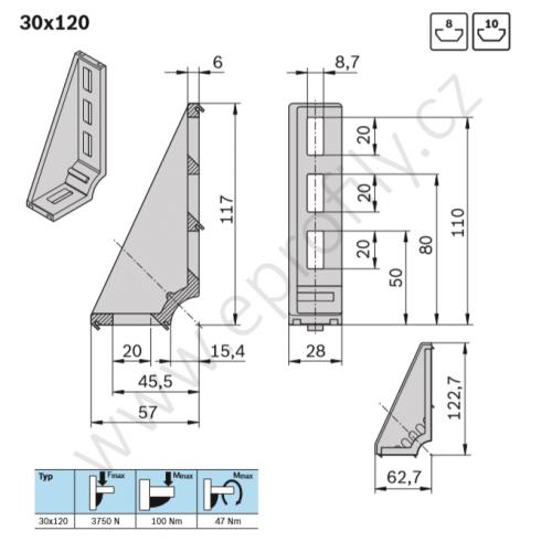 Materiál: tlakový hliníkový odlitek, 90°, 30x120, provedení ESD