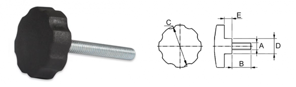 Pozinkovaný ocelový šroub s plastovou hlavou. Díky mimořádně velkému průměru hlavy se tyto šrouby (růžice) drží v ruce pevně a pohodlně.